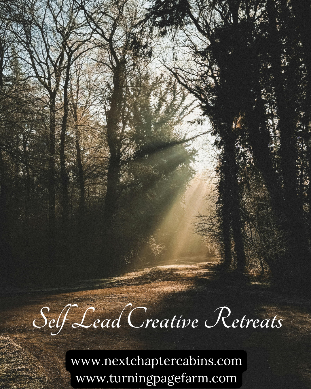 The cabin smells like pine. There's a desk by the window that looks out into the trees. You unpack — notebooks, paints, laptop, whatever you brought — and for the first time in longer than you can remember, nobody needs anything from you.